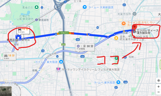 また車でお越しの場合は大阪市鶴見区周辺から20~30分ご来院いただけます。