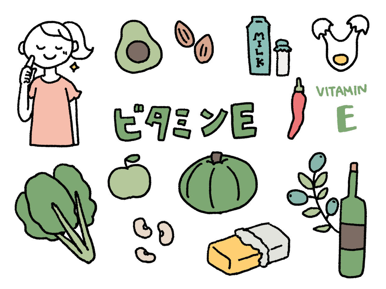 ビタミンEは脂溶性ビタミンであるため、細胞膜に取り込まれ、膜を構成する脂質が酸化(過酸化脂質化)するのを直接防ぎます。